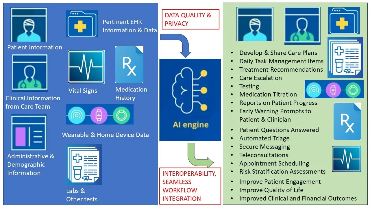 The value of AI is combining multiple data streams to provide timely risk assessments and early warning prompts to better coordinate care plans between patients and clinicians.